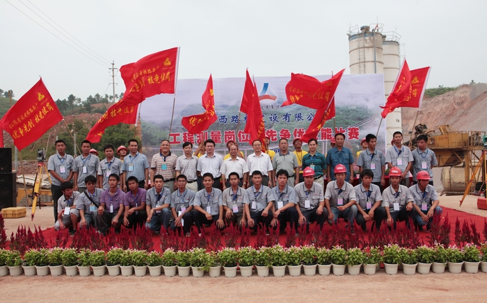 9月2日,廣西路橋建設有限公司在六欽1標舉辦工程測量崗位創(chuàng)先爭優(yōu)技能比賽。廣西交通工會、海員工會主席黎建華,自治區(qū)交通運輸廳直屬機關黨委專職副書記羅華芝,集團,公司黨委副書記張友坐等領導出席比賽開幕儀式并講話。