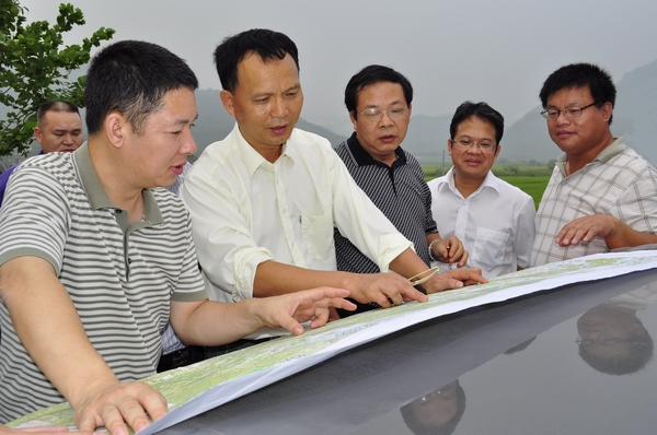 圖一:集團(tuán)公司朱堅和董事長(右3)考察來賓至馬山、馬山至平果高速公路項目