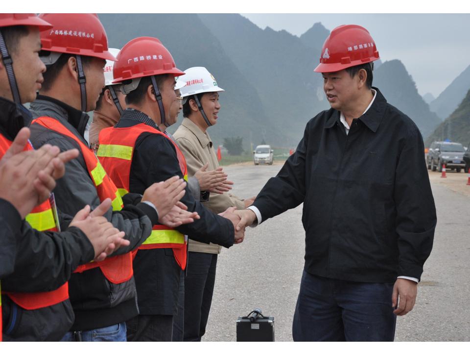 11月22日至23日,自治區(qū)交通運(yùn)輸廳廳長潘巍、副廳長梁毅分別蒞臨廣西路建公司靖那路、欽崇路、玉鐵路等項目檢查調(diào)研,了解項目旱季施工情況,親切慰問奮戰(zhàn)在施工一線的廣大員工,要求各項目把握好有利時機(jī),堅決打贏旱季攻堅戰(zhàn),以優(yōu)異的成績促進(jìn)交通建設(shè)發(fā)展。