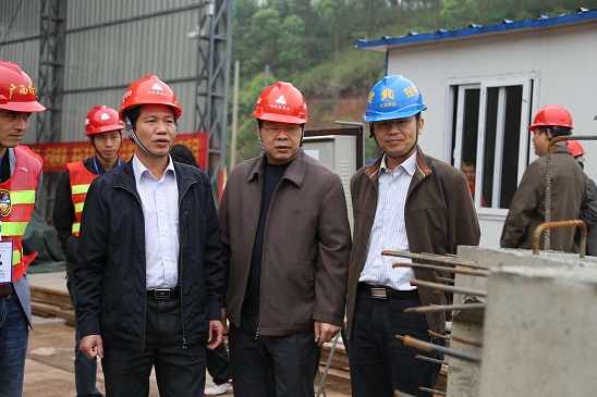 集團公司董事長、黨委書記朱堅和(右三),廣西北部灣投資集團有限公司副總經(jīng)理周華文(右一)在現(xiàn)場交流