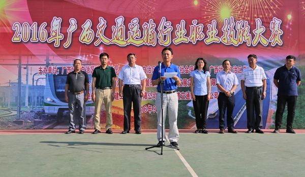 自治區(qū)交通運(yùn)輸廳總工程師王劼耘在2016年廣西交通運(yùn)輸行業(yè)職業(yè)技能大賽開幕式上致辭