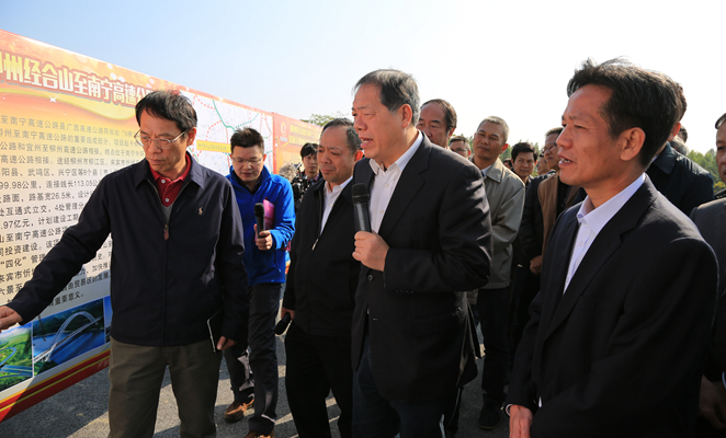 在柳州經(jīng)合山至南寧高速公路(簡稱新柳南高速公路)開工現(xiàn)場會主會場上,集團(tuán)公司黨委書記、董事長朱堅(jiān)和向自治區(qū)人民政府副主席陳剛、自治區(qū)交通運(yùn)輸廳副廳長梁毅等與會領(lǐng)導(dǎo)介紹了新柳南高速公路項(xiàng)目情況,以及集團(tuán)公司目前承建的自治區(qū)重大建設(shè)項(xiàng)目鐘山至來賓、來賓至巴馬、融水至河池等3個(gè)縣縣通高速公路項(xiàng)目建設(shè)情況,朱堅(jiān)和表示,集團(tuán)公司致力于成為自治區(qū)黨委、政府最可信賴的交通基礎(chǔ)設(shè)施投資運(yùn)營力量,全力以赴完成各重大項(xiàng)目建設(shè)任務(wù)。