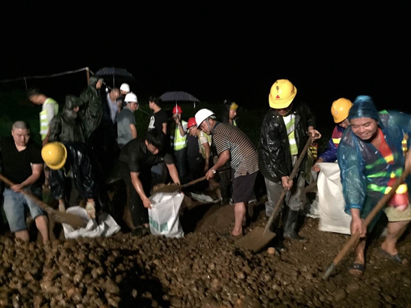 “十萬(wàn)壟大堤出現(xiàn)險(xiǎn)情,大家快去救援。”7月1日21時(shí),湖南省湘潭市,廣西路橋集團(tuán)環(huán)東路項(xiàng)目經(jīng)理部項(xiàng)目常務(wù)副總工程師宋佩超立即組織項(xiàng)目經(jīng)理部員工一起奔赴一線。當(dāng)時(shí)湘潭市十萬(wàn)壟湘江大堤出現(xiàn)直徑約20公分左右管涌,情況十分緊急,附近的新馬路項(xiàng)目部出動(dòng)挖掘機(jī)和裝載機(jī)進(jìn)行搶險(xiǎn)救援。同時(shí),項(xiàng)目經(jīng)理部全體員工與當(dāng)?shù)鼐仍?duì)伍一起排起了長(zhǎng)龍,齊聲喊著口號(hào)“一二”、“一二”裝沙袋、傳運(yùn)沙袋,幫助封堵大堤漏洞。