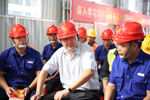 在作業(yè)一線,王躍飛主席結合企業(yè)實際情況,與現(xiàn)場員工及作業(yè)工人深入淺出的講解黨的十九大精神,讓黨的十九大精神在基層落地生根。王躍飛指出,黨的十九大對中華民族乃至每個老百姓的命運十分重要、關鍵,會議選舉出了以習近平總書記為核心的領導集體,確定了習近平新時代中國特色社會主義思想,確定了新的發(fā)展規(guī)劃。王躍飛表示,當前我國的奮斗目標是建設成為富強、民主、文明、和諧、美麗的社會主義現(xiàn)代化強國,我國的社會主要矛盾也已經(jīng)轉(zhuǎn)化為人民日益增長的美好生活需要和不平衡不充分的發(fā)展之間的矛盾,我們要對這些新論斷,新理念有清醒的認識。在宣講過程中,王躍飛用通俗易懂的語言對黨的十九大主要內(nèi)容進行了精彩的講解。