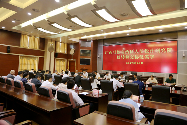 10月30日上午9時,自治區(qū)國資委、自治區(qū)人防辦及廣西新發(fā)展交通集團有限公司在自治區(qū)人防辦應急指揮中心舉行廣西壯族自治區(qū)人防設計研究院劃轉(zhuǎn)移交協(xié)議簽字儀式,標志著自治區(qū)人防設計院正式與自治區(qū)人防辦脫鉤,成建制劃轉(zhuǎn)移交新發(fā)展集團管理。集團公司黨委書記、董事長朱堅和,黨委副書記、副董事長、總經(jīng)理唐咸秋,黨委副書記、董事、工會主席張友坐及集團公司辦公室、投資改革發(fā)展部、人力資源部、黨群工作部、法律事務部等部門主要負責人參加簽字儀式。