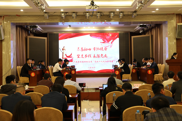 11月15日,新恒通公司賀巴高速(鐘山至昭平段)建設(shè)指揮部黨支部精心組織,舉辦了一次高質(zhì)量的黨的十九大知識競賽?;顒右?ldquo;不忘初心、牢記使命,堅(jiān)定步伐、勇跟黨走”為主題,各參建單位7個代表隊(duì)參加了比賽,指揮部代表隊(duì)以480分摘得桂冠。