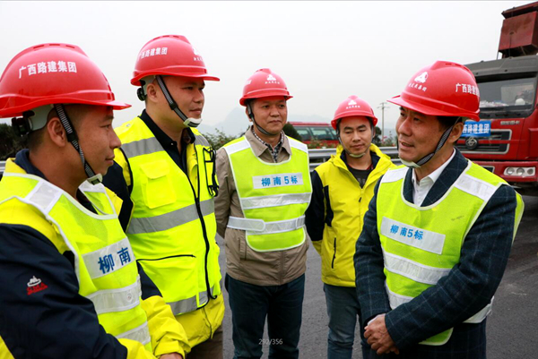 宣講會(huì)結(jié)束后,黃健教授深入柳州至南寧高速公路改擴(kuò)建5標(biāo)項(xiàng)目施工一線調(diào)研,與現(xiàn)場(chǎng)施工人員進(jìn)行親切交流,并就職工提出的問(wèn)題一一進(jìn)行耐心解答。(廣西路建集團(tuán) 供稿)