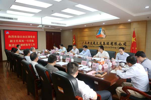 3月5日上午,自治區(qū)國資委副主任高旭,規(guī)劃發(fā)展處處長吳光、副處長陳家炎及第二監(jiān)事辦相關(guān)人員一行6人到集團公司,就集團公司2017年投資計劃完成情況及2018年投資計劃進行調(diào)研。集團公司黨委書記、董事長朱堅和,黨委副書記、副董事長、總經(jīng)理唐咸秋,副總經(jīng)理李德智,總會計師鄧遠志及投資改革發(fā)展部、財務部主要負責人參加會見。