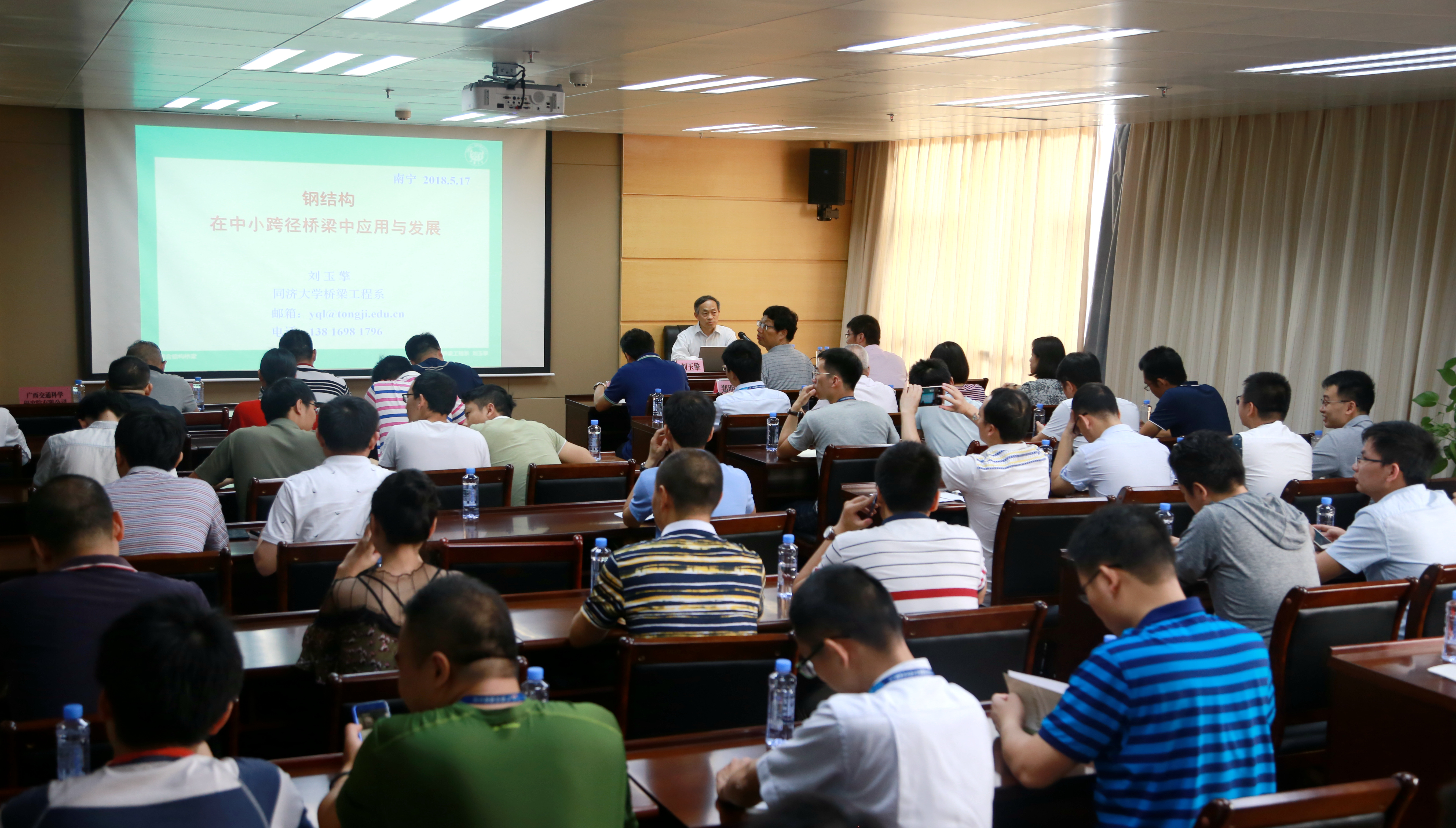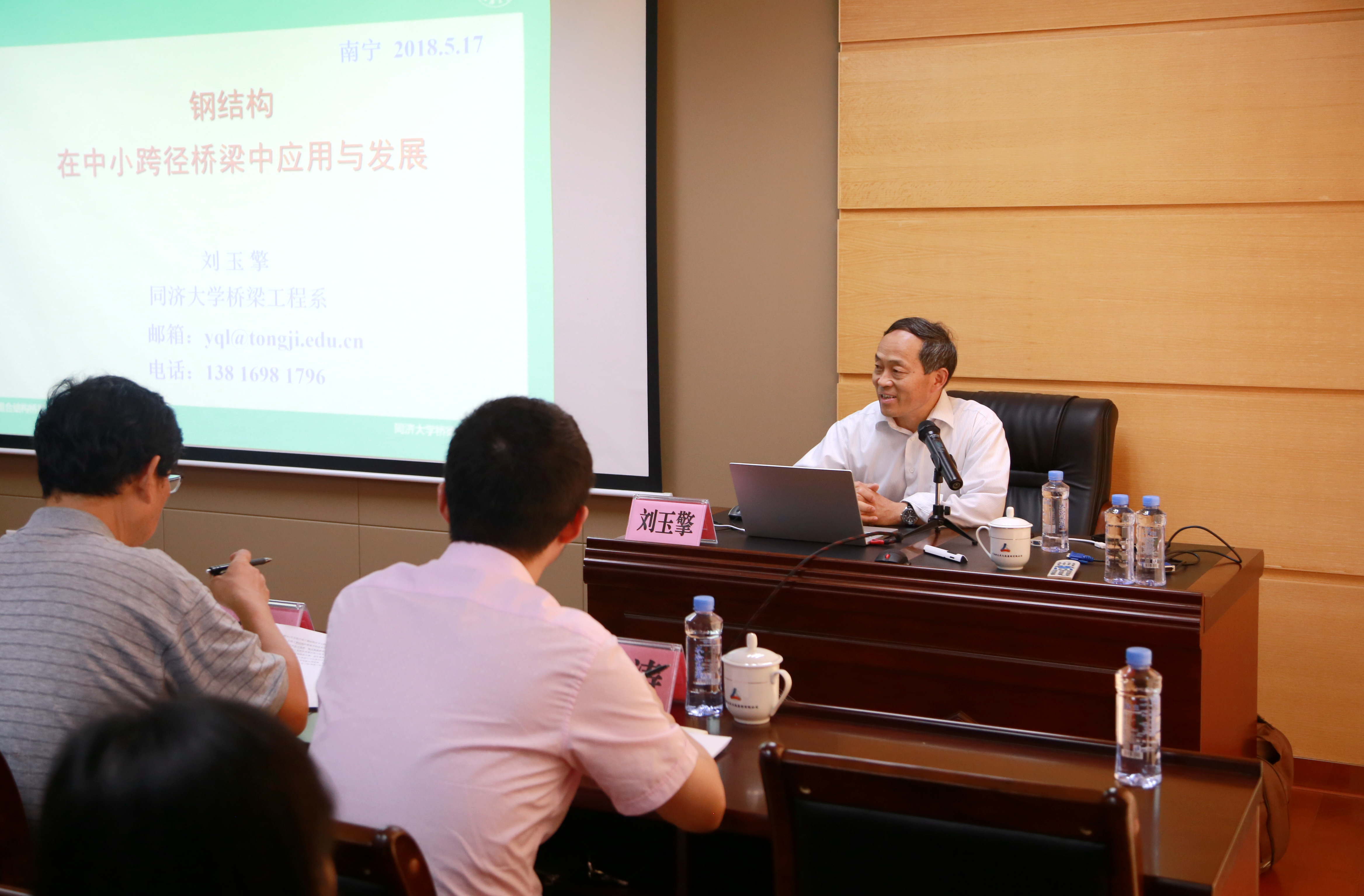 5月17日上午,集團(tuán)公司博士后科研工作站邀請(qǐng)合作流動(dòng)站同濟(jì)大學(xué)橋梁工程系教授、博士生導(dǎo)師劉玉擎到集團(tuán)公司授課,講解鋼結(jié)構(gòu)在中小跨徑橋梁中的應(yīng)用及發(fā)展歷程。集團(tuán)公司總工程師覃炳賢、首席專家鄭明德及直屬企業(yè)技術(shù)骨干共72人參加了講座。