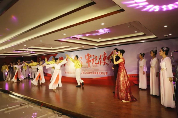 來自新發(fā)展集團(tuán)本部,各直屬單位、指揮部的11支代表隊(duì)歡聚一堂,用滿腔熱情唱響紅色旋律,歌頌黨的恩情,獻(xiàn)禮建黨98華誕。其中,新發(fā)展集團(tuán)本部吟唱余音渺渺的《愛國歌》,用現(xiàn)代舞和朗誦的形式表現(xiàn)個人與祖國血脈相連、風(fēng)雨同當(dāng)?shù)那殂?,最終拔得頭籌;欽北改擴(kuò)建指揮部、人防設(shè)計(jì)院緊緊結(jié)合“不忘初心、牢記使命”主題教育的根本遵循,分別合唱《不忘初心》《走向復(fù)興》兩首曲目,并做到演唱連貫、節(jié)奏鮮明、情緒準(zhǔn)確,分別獲得二等獎;大浦公司、融河高速指揮部、鐘昭高速指揮部則在確保歌曲的完整度、準(zhǔn)確度、協(xié)調(diào)度的同時(shí),在服裝、隊(duì)形、伴奏上別出心裁,最終獲得三等獎;其余隊(duì)伍也各具特色,使所選紅歌綻放出燦爛的光彩,展現(xiàn)出新發(fā)展集團(tuán)奮斗拼搏的精神面貌。