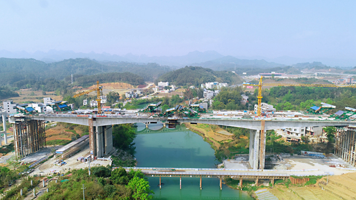 據(jù)悉,巴馬樞紐互通是賀巴高速與河百高速相銜接的一個互通,也是賀巴高速的終點?;ネˋ、C匝道2號大橋長度為532米,剛構橋主跨為110米,跨越盤陽河,是都巴高速的控制性工程之一。截至日前,A匝道樁基完成100%、墩柱完成100%、蓋梁完成100%,上構剛構完成48%;C匝道樁基完成100%、墩柱完成100%、蓋梁完成100%,上構剛構完成36%。